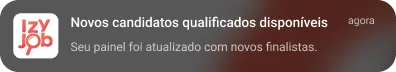 Nossa IA verifica a base de curriculos, aplica os filtros e entrega no seu painel um ranking pronto com os perfis de maior aderência.